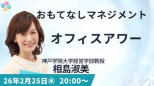 日本人のビジネス慣習は事業のサステナビリティの視点からも海外からおおいに注目されています。本科目では、日本人の感性・行動文化の基盤としての「おもてなし」を経営に活かす思考法をお伝えします。これは、従業員も顧客も、周囲の人たちも、皆が幸せになるための考え方です。第1~6回でおもてなしマネジメントの基本を学び、最後の2回で「おもてなしとES・CS」「コミュニティに広がるおもてなし」について深掘りし、実践につなげます。